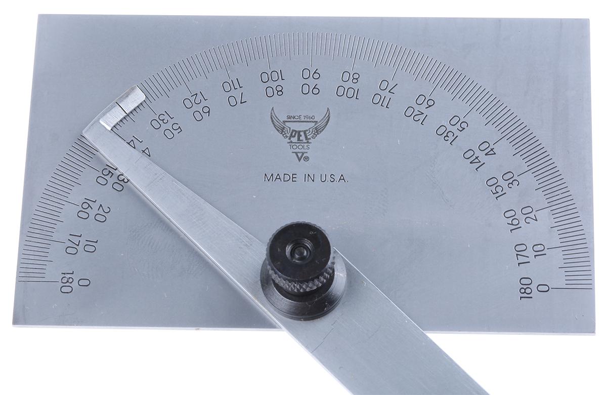 This is 180° Metric Protractor 6 in Steel Blade manufactured by PEC. The manufacturer part number is RS_264-8317. It is available in metric package. The blade has a length of 6 in. It has a 180° angle . In addition, its blade is made up of steel material .