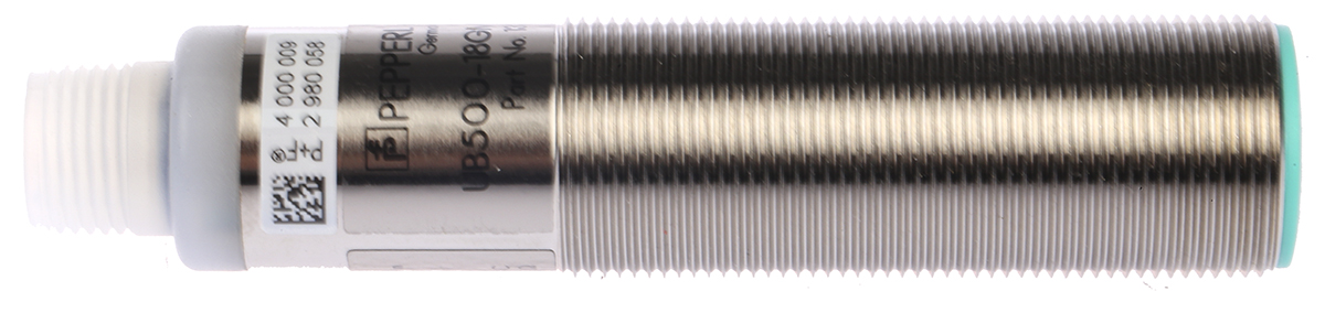 This is Ultrasonic Sensor Barrel 30 → 500 mm Analogue 5-Pin M12 Connector manufactured by Pepperl + Fuchs. The manufacturer part number is UB500-18GM75-I-V15. The product also features robust brass nickel plated housing material. The product has 500 mm of detection range. It is IP rated with ip65. Short Circuit Overload Protection Options - yes. The sensor utilises ultrasonic, a standard technology in sensor markets. It is integrated with 20 ma switching current. It has a typical thread size of m18. Its accurate length is 85mm. Features 10 → 30 v dc supply voltage. Whereas, the minimum operating temperature of the product is -25°c. It has a threaded barrel body style. It has 30v maximum DC voltage. It has a maximum operating temperature of +70°c. It allows m12 connection type.