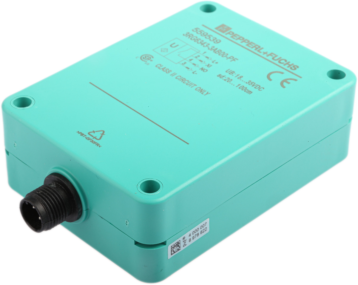 This is Ultrasonic Sensor Block 200 → 1000 mm PNP M12 Connector manufactured by Pepperl + Fuchs. The manufacturer part number is 3RG6343-3AB00-PF. It has 35v maximum DC voltage. The no is the output function of the product. The product has 1 m of detection range. It exhibits a typical 5 hz switching frequency . It is IP rated with ip65. The sensor utilises ultrasonic, a standard technology in sensor markets. It is integrated with 100 ma switching current. Its accurate length is 101.5mm. It has a maximum 5hz switching frequency. The product also features robust pbt housing material. Furthermore, the product is 30mm wide. The product comes in 65mm depth. Features 10 → 35 v dc supply voltage. Whereas, the minimum operating temperature of the product is 0°c. It has a block body style. It has a maximum operating temperature of +55°c. It allows m12 connection type.