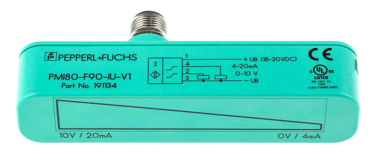 This is M12 x 1 Analogue Inductive Sensor 102mm Length 18 → 30 V dc supply voltage IP67 Rating manufactured by Pepperl + Fuchs. The manufacturer part number is PMI80-F90-IU-V1. The product also features robust abs housing material. The product has 23 mm of detection range. The product is available in flush configuration. It is IP rated with ip67. The sensor utilises inductive, a standard technology in sensor markets. Its accurate length is 102mm. It has a typical thread size of m12. Furthermore, the product is 23mm wide. The product comes in 41mm depth. Reverse Polarity Protection Options - yes. Features 18 → 30 v dc supply voltage. Whereas, the minimum operating temperature of the product is -25°c. It has a block body style. It has 30v maximum DC voltage. It has a maximum operating temperature of +70°c. It allows m12 connection type.