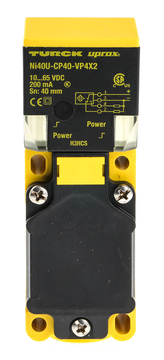 This is NO/NC Inductive Sensor Maximum of 40 mm Detection Range Block 40mm length 10 → 65 V dc IP67 manufactured by Turck. The manufacturer part number is NI40U-CP40-VP4X2. The no+nc is the output function of the product. It exhibits a typical 250 hz switching frequency . The product also features robust plastic housing material. Furthermore, the product is 114mm wide. Features 10 → 65 v dc supply voltage. Furthermore, the product is shielded with unshielded. It has a maximum 250hz switching frequency. Reverse Polarity Protection Options - yes. The product has 40 mm of detection range. It has a block body style. It has a maximum operating temperature of +85°c. It is IP rated with ip67. It is integrated with 200 ma switching current. Its accurate length is 40mm. Short Circuit Overload Protection Options - yes. It has 65v maximum DC voltage. The product is available in non-flush configuration. The sensor utilises inductive, a standard technology in sensor markets. The product comes in 40mm depth. Whereas, the minimum operating temperature of the product is -25°c. It allows screw terminal connection type.