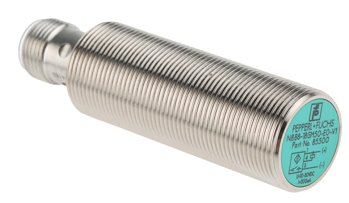 This is NPN Inductive Sensor 8 mm Detection Range Barrel 65mm length 10 → 30 V dc IP67 manufactured by Pepperl + Fuchs. The manufacturer part number is NBB8-18GM50-E0-V1. The no is the output function of the product. It exhibits a typical 1.35 khz switching frequency . The product also features robust brass, white bronze coated housing material. Features 5 → 36 v dc supply voltage. Furthermore, the product is shielded with shielded. It has a maximum 1.35khz switching frequency. Reverse Polarity Protection Options - yes. The product has 8 mm of detection range. It has a threaded barrel body style. It has a maximum operating temperature of +85°c. It is IP rated with ip68. It is integrated with 200 ma switching current. Its accurate length is 65mm. It has 36v maximum DC voltage. It has a typical thread size of m18. Short Circuit Overload Protection Options - yes. The product is available in flush configuration. The sensor utilises inductive, a standard technology in sensor markets. The product comes in 18mm depth. Whereas, the minimum operating temperature of the product is -40°c. It allows m12 connection type.