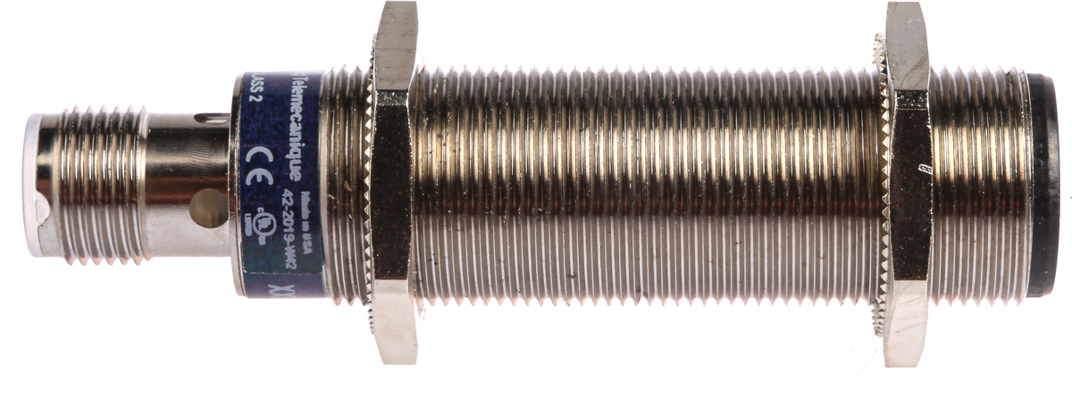 This is Ultrasonic Sensor Barrel M18 x 1 3 → 50 mm PNP-NO 4-Pin M12 Connector IP67 manufactured by Telemecanique Sensors. The manufacturer part number is XXV18B1PAM12. The product also features robust brass housing material. The no is the output function of the product. The product has 50 mm of detection range. It exhibits a typical 80 hz switching frequency . It is IP rated with ip67. Short Circuit Overload Protection Options - yes. The sensor utilises ultrasonic, a standard technology in sensor markets. It is integrated with 200 ma switching current. It has a maximum 80hz switching frequency. It has a typical thread size of m18. Its accurate length is 75mm. Reverse Polarity Protection Options - yes. Features 12 → 24 v dc supply voltage. It has a threaded barrel body style. It has 36v maximum DC voltage. It has a maximum operating temperature of +60°c. Whereas, the minimum operating temperature of the product is 0°c. It allows m12 connection type.