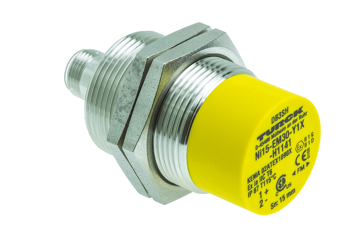 This is NAMUR Inductive Sensor 0 → 15 mm Detection Range Barrel 62mm length 8.2 V dc IP67 manufactured by Turck. The manufacturer part number is Ni15-EM30-Y1X-H1141. It has 8.2v maximum DC voltage. The product is certified with atex hazardous area certification. Furthermore, the product is shielded with shielded. The product is available in non-flush configuration. It is IP rated with ip67. The sensor utilises inductive, a standard technology in sensor markets. Furthermore, it has anamur output. It has a typical thread size of m30 x 1.5. Its accurate length is 62mm. Features 8.2 v dc supply voltage. It has a barrel body style. The terminal is a 4-pin m12 connector type. The product has 15 mm of detection range.