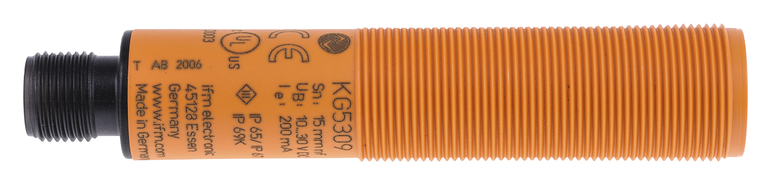 This is IO-Link SDCI SIO Capacitive sensor 0.5 → 30 mm length 92.5mm PNP-NO manufactured by ifm electronic. The manufacturer part number is KG5309. The no is the output function of the product. It exhibits a typical 30 hz switching frequency . The product also features robust pbt, pc, pom housing material. Features 10 → 30 v dc supply voltage. Furthermore, the product is shielded with unshielded. The product complies with all safety standards, such as ce, culus, din en 60947-5-2, eac, en 55011, en 61000-4-2, en 61000-4-3, en 61000-4-4, en 61000-4-6, iec 61131-9. It has a maximum 30hz switching frequency. Reverse Polarity Protection Options - yes. The product has 30 mm of detection range. It has a threaded barrel body style. It has a maximum operating temperature of +80°c. Whereas, the minimum operating temperature of the product is -25°c. It is IP rated with ip65, ip67, ip69k. It is integrated with 22 ma switching current. Its accurate length is 92.5mm. It is tailored with io-link communication protocol . It has 30v maximum DC voltage. Short Circuit Overload Protection Options - yes. It has a typical thread size of m18. The product is available in non-flush configuration. The sensor utilises capacitive, a standard technology in sensor markets. It allows m12 connection type.