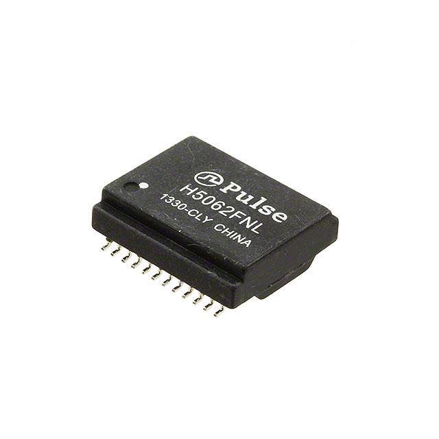 This is manufactured by Pulse Electronics. The manufacturer part number is H5062FNL. It is assigned with possible HTSUS value of 8504.31.2000. The product is rohs compliant. The product has 0°c ~ 70°c operating temperature range. It has the maximum seated height of 0.225" (5.72mm). In addition, it is reach unaffected. The product has a 350µh inductance value. The pulse electronics's product offers user-desired applications. The product's diameters include 0.689" l x 0.600" w (17.50mm x 15.24mm). The typical primary and secondary turn ratio is 1ct:1ct transmitter, 1ct:1ct receiver. It has a long 10 weeks standard lead time. Its typical moisture sensitivity level is 1 (unlimited). It is a lan 10/100/1000 base-t transformer. The product is available in surface mount configuration. In addition, tube is the available packaging type of the product. The product is designated with the ear99 code number.