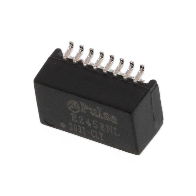 This is manufactured by Pulse Electronics. The manufacturer part number is E2458NL. It is assigned with possible HTSUS value of 8504.31.2000. The product is rohs3 compliant. The product has 0°c ~ 70°c operating temperature range. It has the maximum seated height of 0.241" (6.12mm). In addition, it is reach unaffected. The product has a 160µh, 160µh inductance value. It is shipped in tube package . The product's diameters include 0.500" l x 0.358" w (12.70mm x 9.09mm). It is a isolation and data interface (encapsulated) transformer. The typical primary and secondary turn ratio is 1ct:1.41ct transmitter, 1ct:1ct receiver. It has a long 9 weeks standard lead time. Its typical moisture sensitivity level is 1 (unlimited). The product is available in surface mount configuration. The typical product's weight is 0.03 oz (0.85 g). The product is designated with the ear99 code number.