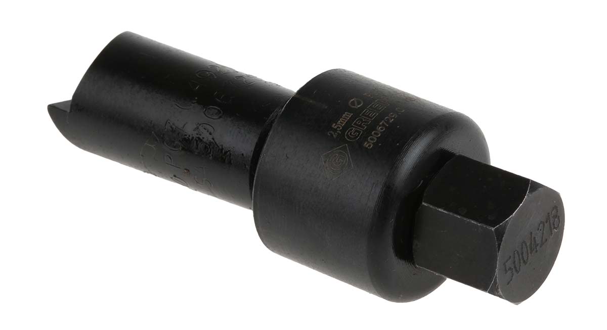 This is 12.5mm Hand Circular Punch and Die Tool manufactured by Greenlee. The manufacturer part number is 50067273. Its typical cutting capacity is mild steel: 3 mm; aluminium: 3 mm; fibreglass and plastic; 3 mm . It allows to operate using hand. It has a hole of circular shape . Its hole size is about 12.5mm .