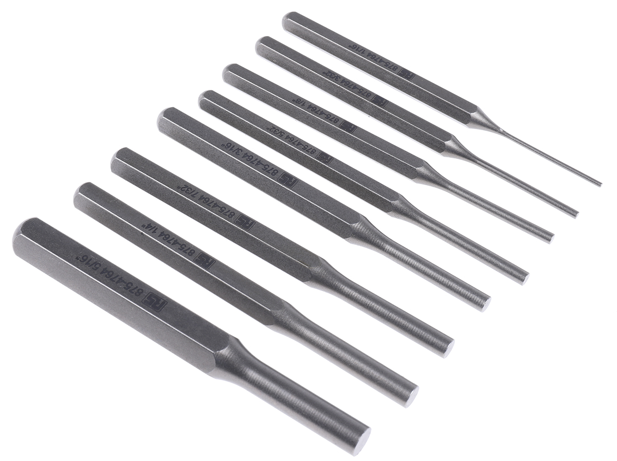 This is 8 piece Punch Set Parallel Pin 105 mm manufactured by RS Pro. The manufacturer part number is 875-4764. Moreover, it is tailored with a/an parallel pin type punch . In addition, its shank diameter is about 1/16 to 7/32 in . The product consists of 8 pieces.