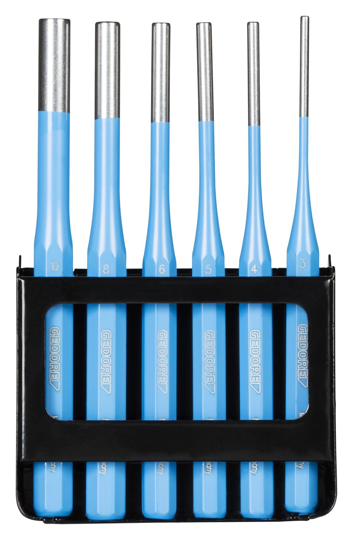 This is 6 piece Punch Set Parallel Pin manufactured by Gedore. The manufacturer part number is 316D. Moreover, it is tailored with a/an parallel pin type punch . In addition, its shank diameter is about 3 → 10 mm . The product consists of 6 pieces.