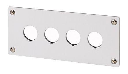 This is M22 Plate for use with M22 Series Modular Push Buttons manufactured by Eaton. The manufacturer part number is M22-E4. The product is highly suitable for m22 series modular push buttons. The product m22, is a highly preferred choice for users. It is a type of flush mounting plate accessory. It has 3d cad model CAD drawing .