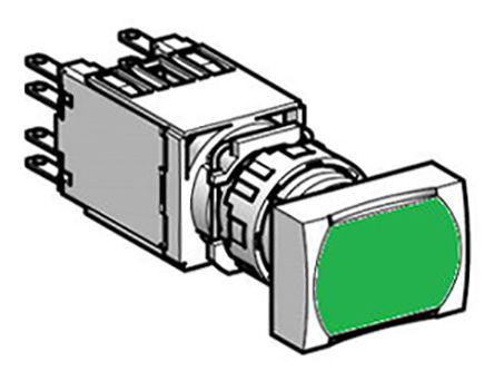 This is XB6 Illuminated Green Push Button Maintained manufactured by Schneider Electric. The manufacturer part number is XB6DF3G5B. It also carries 3 a ac, 220 ma dc maximum current. A bespoke product carries 240v of maximum AC voltage. Illumination Option yes. The product is available in flush mount configuration. It is IP rated with ip65. Whereas, the minimum operating temperature of the product is -25°c. The product xb6, is a highly preferred choice for users. It has a typical 12 → 24v illumination voltage . This pushbutton has a rectangular style pushbutton and is easy to use. The terminal is a quick connect, solder tag type. The push button has maintained actuation mechanism. While it has an adorable green colour. Whereas its cut-out diameter is 16.2mm. It has 250v maximum DC voltage. It has a maximum operating temperature of +70°c.