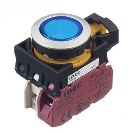 This is CW Illuminated Blue Push Button NC Momentary manufactured by Idec. The manufacturer part number is CW4L-M1E01Q4S. It also carries 10 a maximum current. A bespoke product carries 24v of maximum AC voltage. Illumination Option yes. The product is available in panel mount configuration. It is IP rated with ip65. Whereas, the minimum operating temperature of the product is -25°c. The product cw, is a highly preferred choice for users. The contact is equipped with nc configuration. It has unmarked marking on push button . It includes a push button of round shape . Pushbutton is manufactured from highly rugged and reliable plastic material. The push button has momentary actuation mechanism. The product's body is nicely designed from metal materials. This pushbutton has a flush style pushbutton and is easy to use. While it has an adorable blue colour. Whereas its cut-out diameter is 22.3mm. It has 24v maximum DC voltage. It has a maximum operating temperature of +55°c. The terminal is a screw type. In addition, the push button diameter of the product is about 28mm .