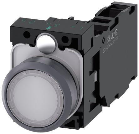 This is SIRIUS ACT Illuminated White Flat Push Button Complete Unit Momentary Screw manufactured by Siemens. The manufacturer part number is 3SU1133-0AB60-1FA0. It has 500v maximum DC voltage. A bespoke product carries 500v of maximum AC voltage. Illumination Option yes. It also carries 10a maximum current. It is IP rated with ip66, ip67, ip69(ip69k). Whereas, the minimum operating temperature of the product is -25°c. The product sirius act, is a highly preferred choice for users. It has a typical 110v illumination voltage . It includes a push button of round shape . Pushbutton is manufactured from highly rugged and reliable plastic material. The push button has momentary actuation mechanism. The product's body is nicely designed from metal materials. This pushbutton has a flat style pushbutton and is easy to use. While it has an adorable white colour. It has a maximum operating temperature of +70°c. The terminal is a screw type. In addition, the push button diameter of the product is about 29.45mm .