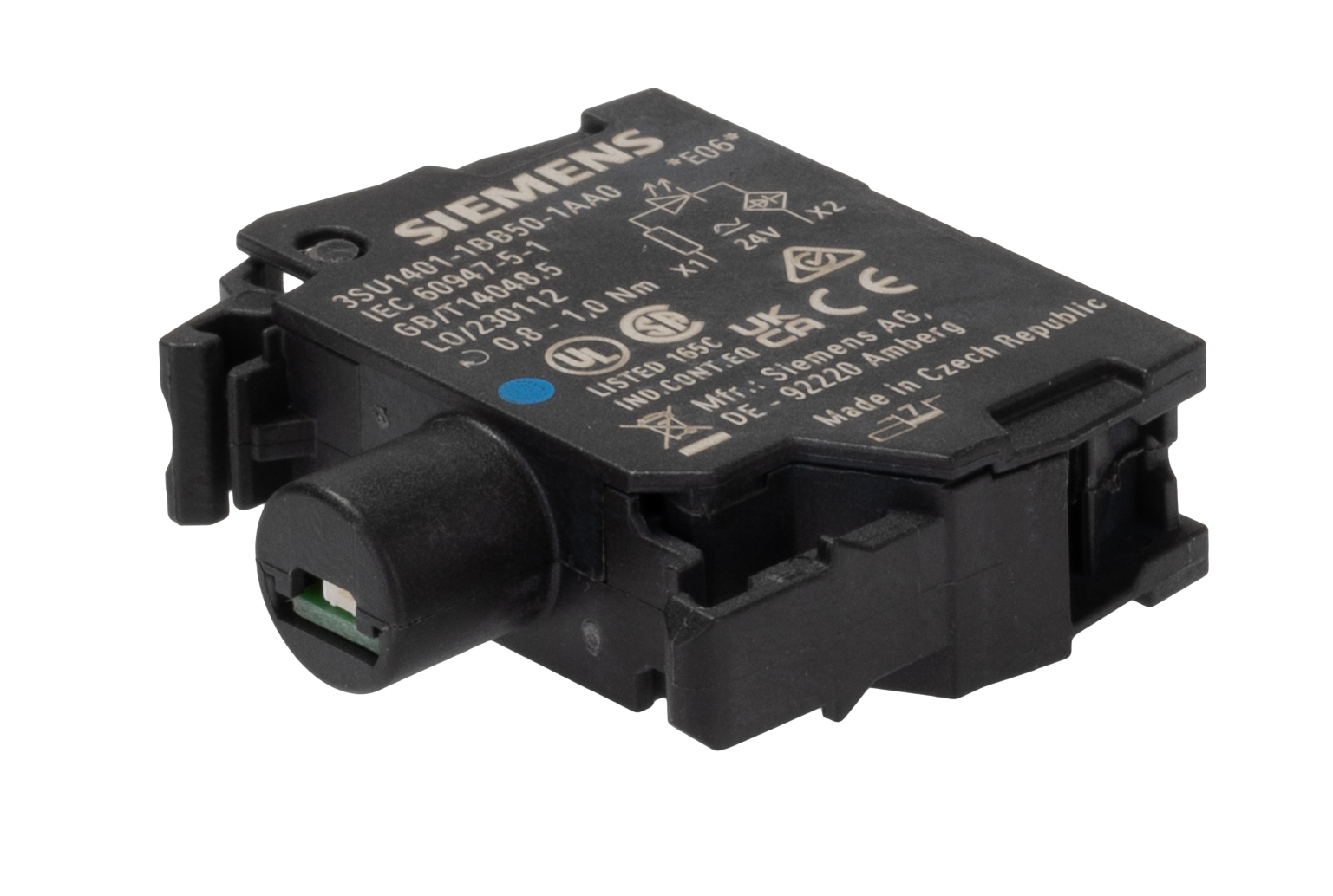 This is SIRIUS ACT Light Block LED Blue 24 V ac/dc Screw terminal manufactured by Siemens. The manufacturer part number is 3SU1401-1BB50-1AA0. Is it a better world product? yes. The product has a current rating of 25ma. It contains a/an led type illumination . Moreover, the product has a nominal 24v ac/dc voltage rating. The product sirius act 3su14, is a highly preferred choice for users. It includes a body/fixing collar no . Its block type is light block . It includes an LED yes . The terminal is a screw type.