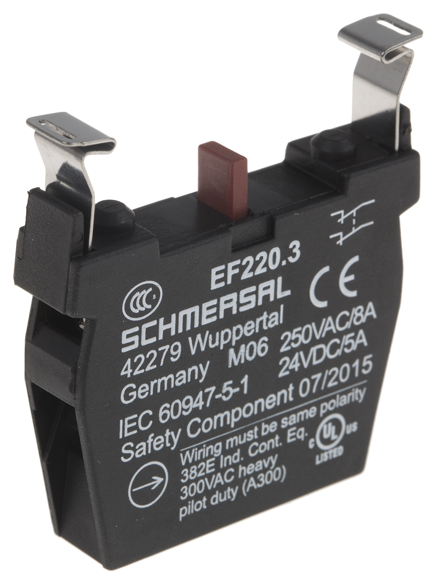 This is Contact Block For Use With NDR E-Stop manufactured by Schmersal. The manufacturer part number is EF220.3. The product is highly suitable for ndr e-stop. The contact is equipped with 2nc configuration.