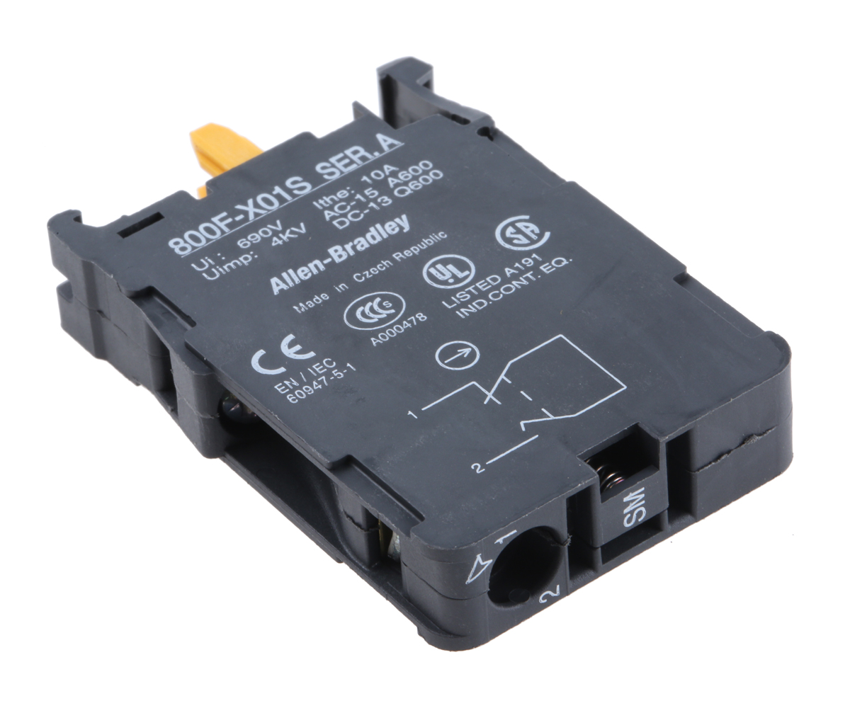 This is Contact Block For Use With 800F Series manufactured by Allen Bradley. The manufacturer part number is 800F-PX01S. The product is highly suitable for 800f series.