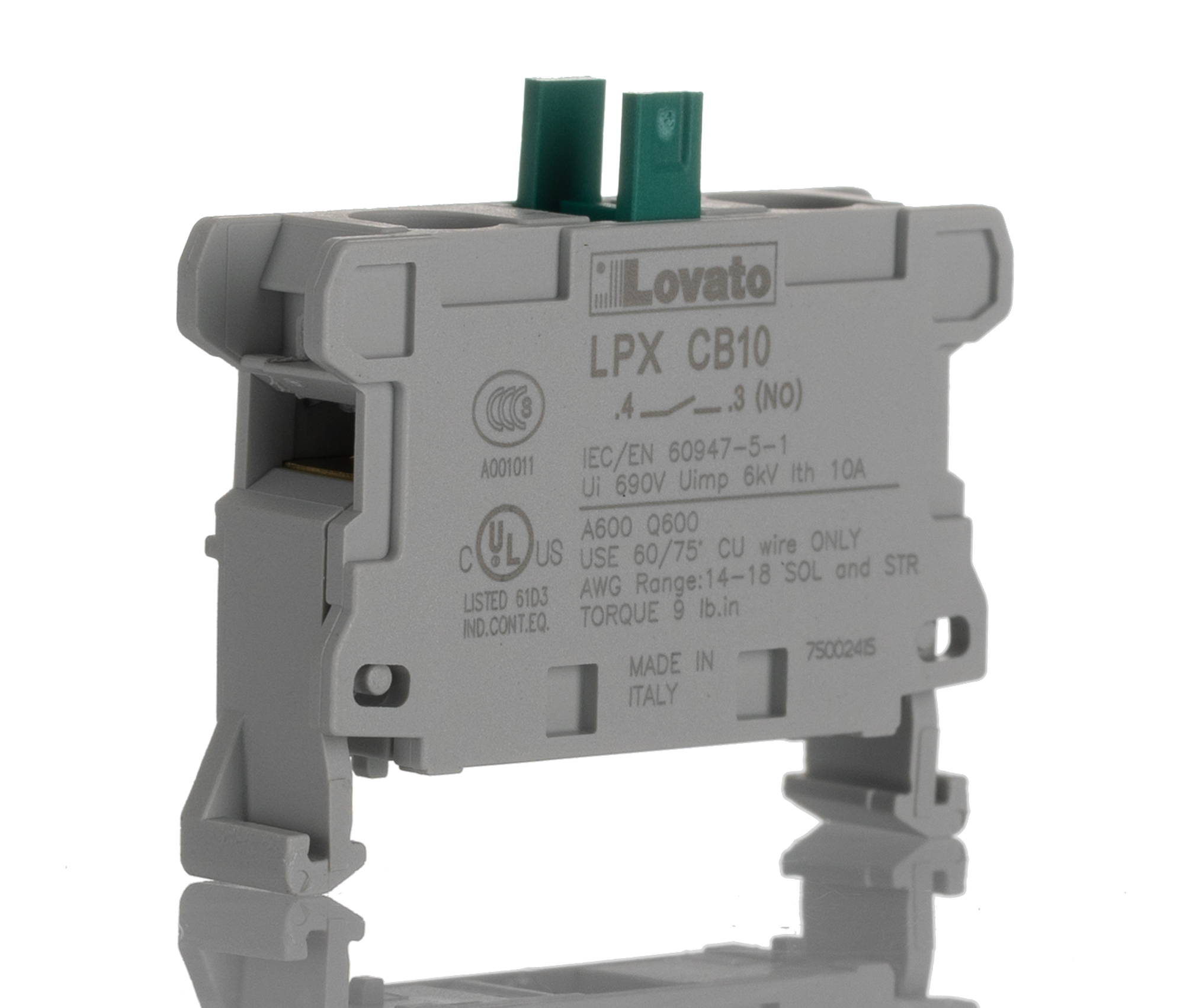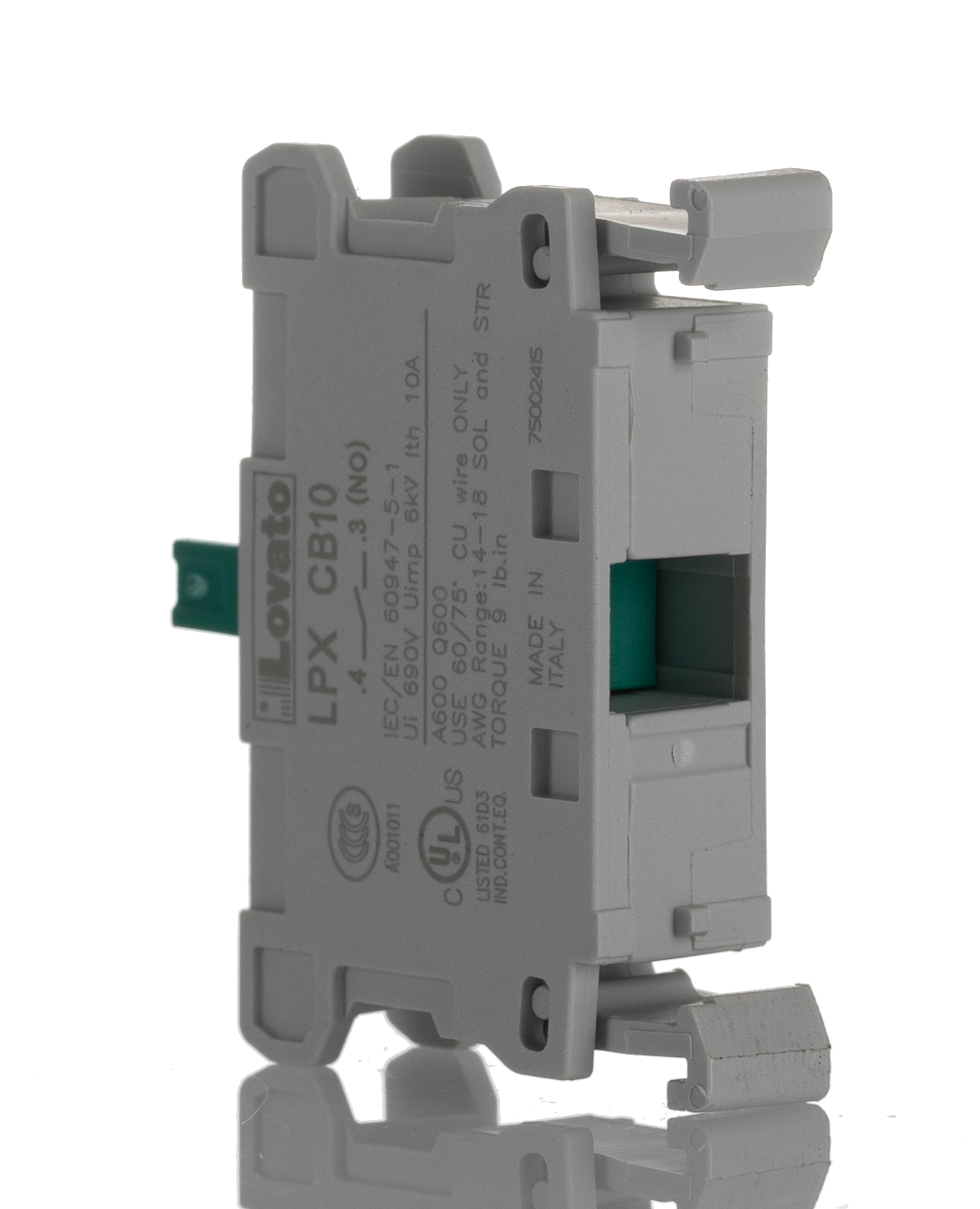 This is Platinum 22mm Rear Mount Contact Block 1NO Screw terminal manufactured by Lovato. The manufacturer part number is LPXCB10. The product has a current rating of 10a. Moreover, the product has a nominal 690v voltage rating. The product platinum 22mm, is a highly preferred choice for users. It includes a body/fixing collar no . The contact is equipped with 1no configuration. Its block type is contact block . It includes an LED no . The product is highly suitable for lpz control stations. The terminal is a screw type.