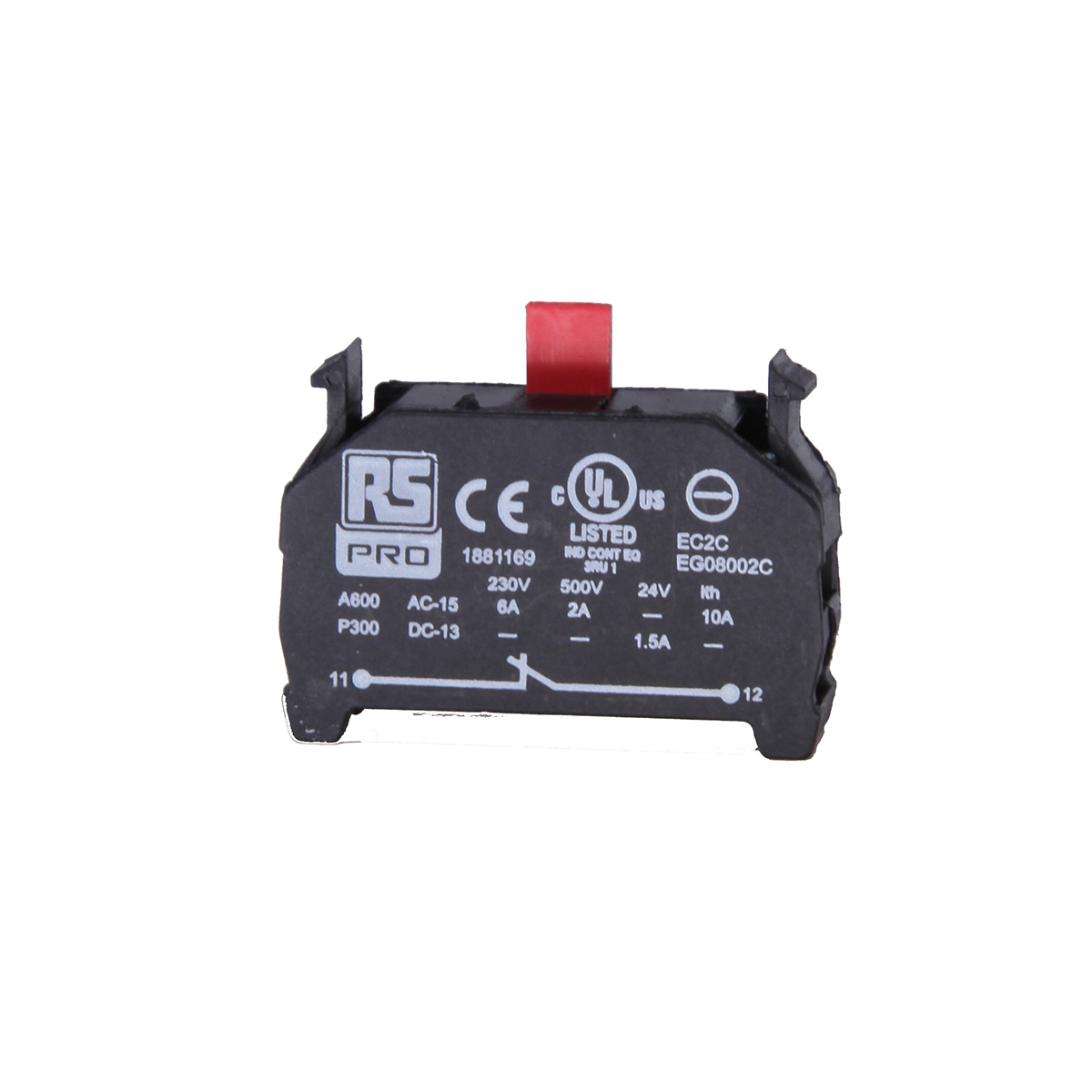 This is Contact Block NC Screw terminal manufactured by RS PRO. The manufacturer part number is 188-1169. The contact is equipped with 1nc configuration. Its block type is contact block . The terminal is a screw type. Moreover, the product has a nominal 230v voltage rating.