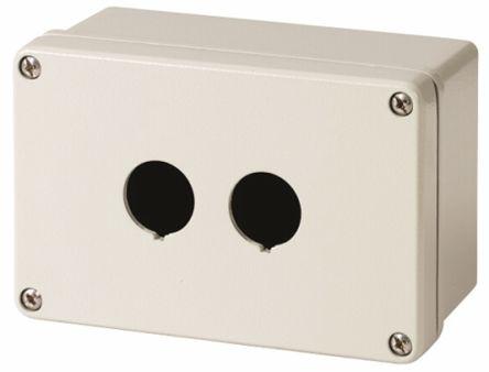 This is Push Button Enclosure 2 Hole RAL7032 22mm diameter Aluminium manufactured by Eaton. The manufacturer part number is I2M-SAL. It is IP rated with ip69k. The product m22, is a highly preferred choice for users. Additionally, it includes 2 cutouts . Its is offered with ral7032 colour enclosure . Whereas its cut-out diameter is 22mm. In addition, its enclosure is made up of aluminium material .