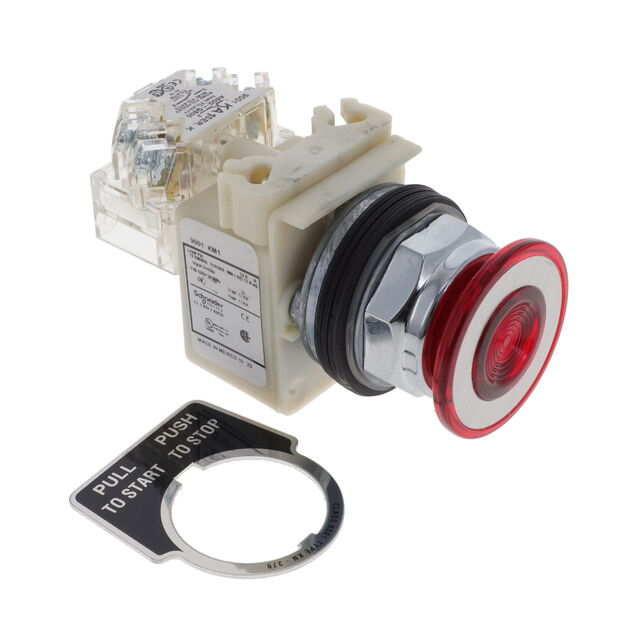 This is 9001 Series Red Push Button Head Maintained Push Pull 30mm Cutout manufactured by Schneider Electric. The manufacturer part number is 9001KR9P1RH13. It is IP rated with ip66. The product 9001, is a highly preferred choice for users. This pushbutton has a round style pushbutton and is easy to use. It includes a push button of round shape . While it has an adorable red colour. Whereas its cut-out diameter is 30mm. The push button has maintained, push pull actuation mechanism. It is assigned with possible HTSUS value of 8536.50.9035. The product is rohs3 compliant. Moreover, it has screw terminal terminal style. It also has a circular - 30.00mm dia dimensional features. It comes in standard, illuminated configuration. It is made from red. In addition, it is reach affected. It is supplied with incandescent, red illumination. It is designed as a on-on switching function. Its typical moisture sensitivity level is not applicable. It has an integral spdt circuit. It has a long 5 weeks standard lead time. Additionally, the product's output is 10a (ac/dc). The product is available in panel mount, front configuration. The product harmony 9001k, is a highly preferred choice for users. In addition, box is the available packaging type of the product. The product carries round, button, mushroom actuator. The nominal illumination voltage of the product is 110 ~ 120 vac. The product is designated with the ear99 code number.
