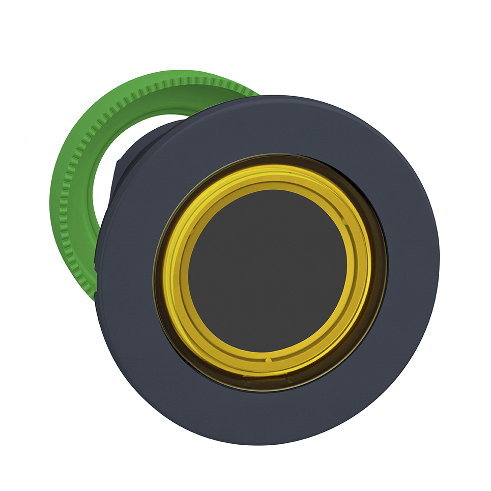 This is Harmony XB5 Series Yellow Push Button Head Spring Return 30mm Cutout manufactured by Schneider Electric. The manufacturer part number is ZB5FW983. Better World Verification Options - green premium. Is it a better world product? yes. In addition, the push button diameter of the product is about 37mm . It is IP rated with ip66, ip67. The product harmony zb5, is a highly preferred choice for users. This pushbutton has a round style pushbutton and is easy to use. Pushbutton is manufactured from highly rugged and reliable plastic material. While it has an adorable yellow colour. Whereas its cut-out diameter is 30mm. The push button has momentary actuation mechanism.