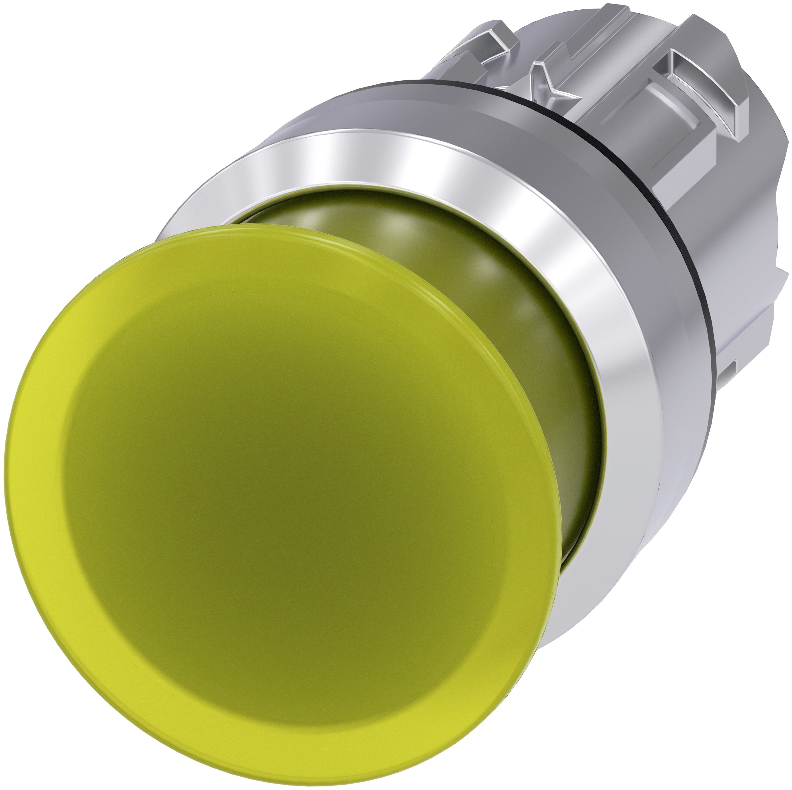 This is ILLUM. MUSHROOM PUSHBUTTON 30MM YELLOW manufactured by Siemens. The manufacturer part number is 3SU1051-1AD30-0AA0. Is it a better world product? yes. While it has an adorable yellow colour. It is IP rated with ip66, ip67, ip69k. The product sirius act 3su10, is a highly preferred choice for users. This pushbutton has a round style pushbutton and is easy to use. Pushbutton is manufactured from highly rugged and reliable metal material. Whereas its cut-out diameter is 22mm. The push button has momentary actuation mechanism. In addition, the push button diameter of the product is about 30mm .