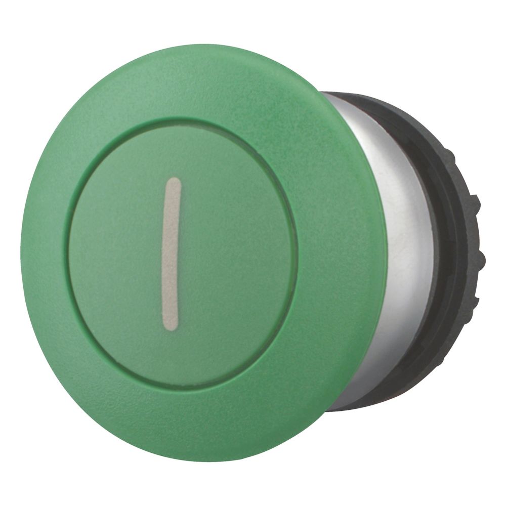 This is Mushroom Green Push Button - Momentary M22 Series 22mm Cutout Round manufactured by Eaton. The manufacturer part number is 216722 M22-DP-G-X1. It is IP rated with ip67. The product rmq titan m22, is a highly preferred choice for users. This pushbutton has a round style pushbutton and is easy to use. Pushbutton is manufactured from highly rugged and reliable plastic material. While it has an adorable green colour. Whereas its cut-out diameter is 22mm. The push button has momentary actuation mechanism. In addition, the push button diameter of the product is about 35mm .