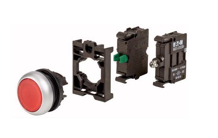 This is Round Illuminated Red Push Button Head - Momentary M22 Series 22mm Cutout Round manufactured by Eaton. The manufacturer part number is 78639207 M22-DL-R+M22-A+M22-LED-R. Illumination Option yes. It is IP rated with ip69k. The product rmq titan m22, is a highly preferred choice for users. Whereas, the minimum operating temperature of the product is -25°c. This pushbutton has a round style pushbutton and is easy to use. Pushbutton is manufactured from highly rugged and reliable plastic material. The push button has momentary actuation mechanism. While it has an adorable red colour. Whereas its cut-out diameter is 22mm. It has a maximum operating temperature of +70°c. The terminal is a screw type. In addition, the push button diameter of the product is about 29.7mm .