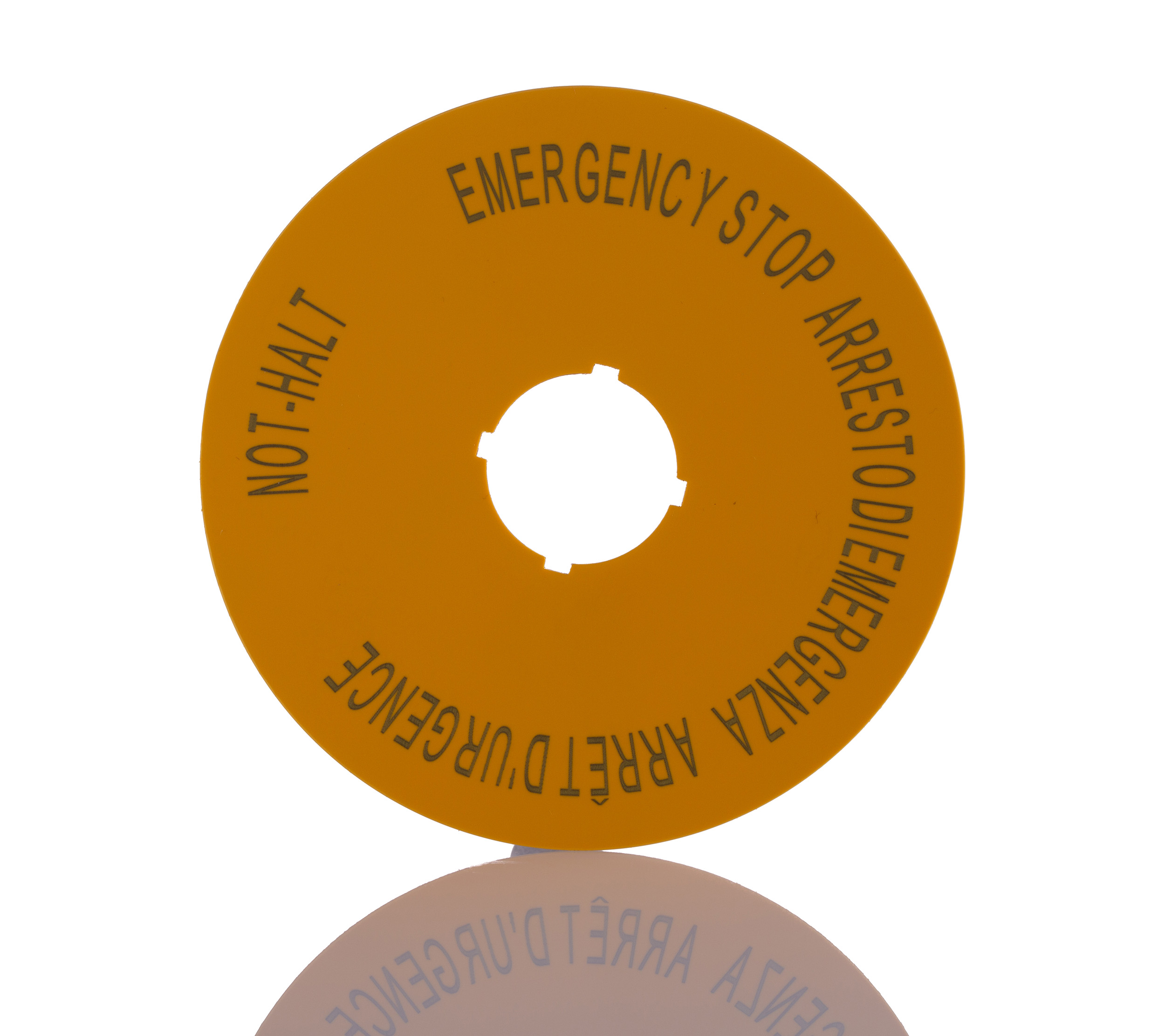 This is M22 Legend Plate for M22 Series Modular Push Buttons manufactured by Eaton. The manufacturer part number is 121085 M22-XAK11. Its label shows a/an arrêt d'urgence - emergency stop - arresto di emergenza - not halt text . The product m22, is a highly preferred choice for users. It is a type of legend plate accessory. The product is highly suitable for m22 series modular push buttons.