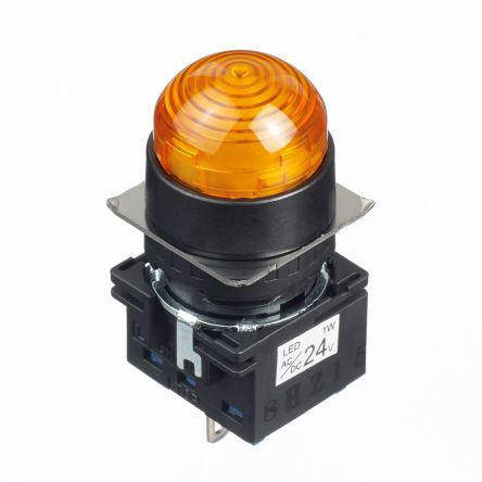 This is Amber Round Push Button Switch manufactured by Idec. The manufacturer part number is LB1P-2T04A. This integrated adorable lens is [Lense Shape] shaped lens with exquisite design. The lens has an adorable amber colour. It is a type of pilot light switch accessory. The given dimensions of the product include 18 dia.mm.