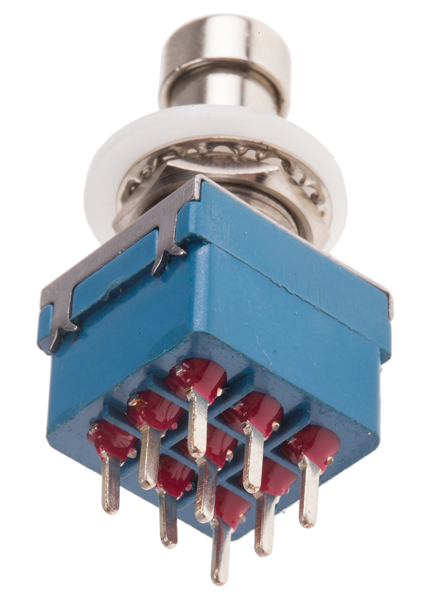 This is 3PDT On-On Push Button Switch 12.2 (Dia.)mm PCB manufactured by RS Pro. The manufacturer part number is 846-6745. Illumination Option no. The product is available in pcb configuration. The rated contact current is 2 a, 4 a. The panel has a 12.2mm cut-out diameter. It has about 12 v, 24v contact DC voltage rating . The contact is equipped with 3pdt configuration. The product has an assigned fs-3p1-pcbdm2qe manufacturer part number. The product is made from sturdy tin plated copper materials. Its contact AC voltage rating is about 250 / 125v . The terminal is a pc pin type. It provides latching switch operation.