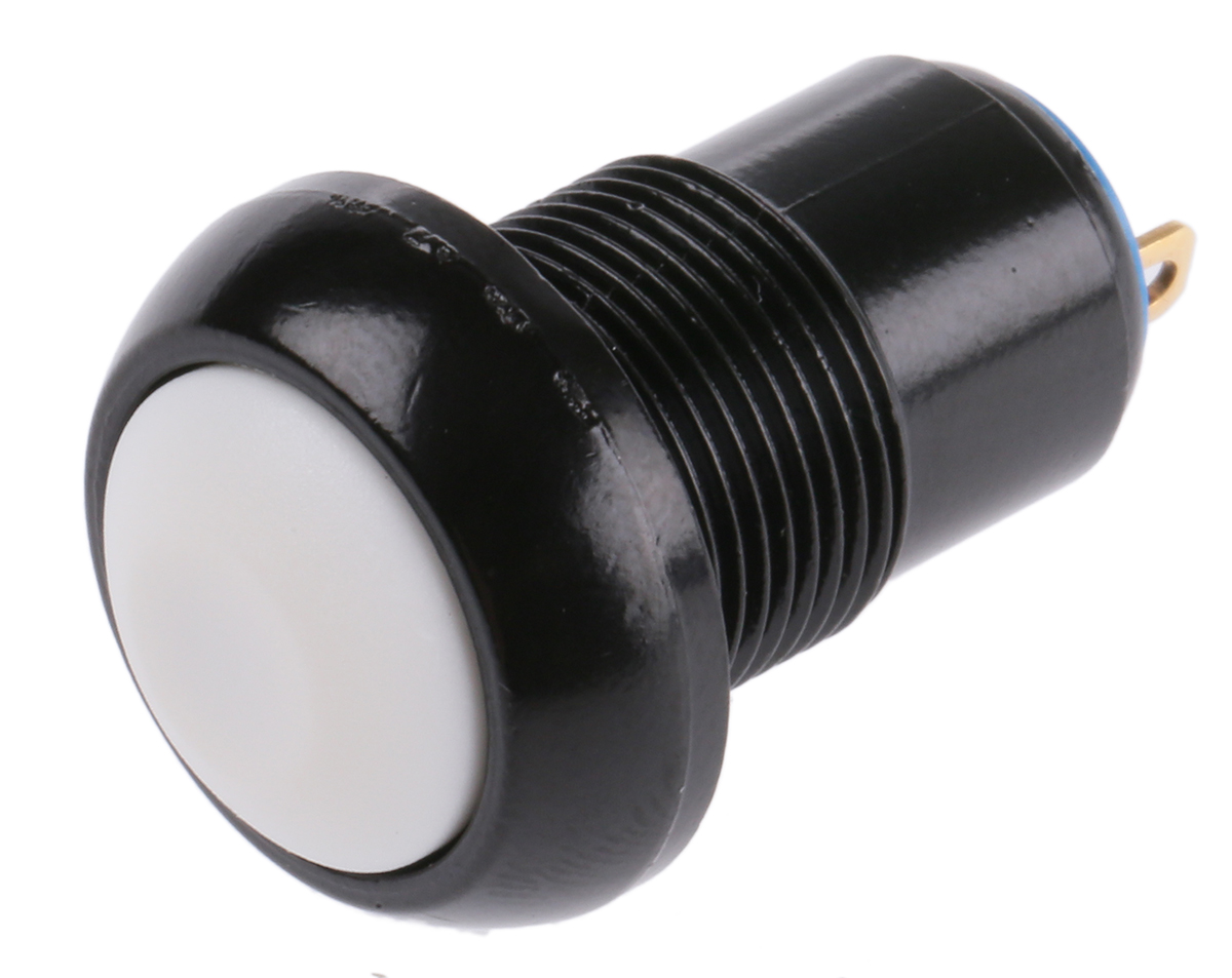 This is SP Off-On Push Button Switch IP67 Panel Mount manufactured by Apem. The manufacturer part number is IPR1SAD7/1. Illumination Option no. The product is available in panel mount configuration. It is IP rated with ip67. The rated contact current is 5 a @ 28 v dc. The panel has a 13.6mm cut-out diameter. Moreover, the product has a nominal 28v dc voltage rating. This pushbutton has a dome style pushbutton and is easy to use. The contact is equipped with spst configuration. The casing is finished with an adorable black colour. While it has an adorable white colour. The product has an assigned ipr1sad7/1 manufacturer part number. It provides latching switch operation. The terminal is a solder type. The product is made from sturdy gold plated silver materials.