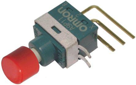 This is SPDT On-(On) Miniature Push Button Switch IP64 PCB manufactured by Omron. The manufacturer part number is A9P130033. It is designed with an adorable cylinder shape actuator . The actuator has an adorable red colour. Illumination Option no. The product is available in pcb configuration. It is IP rated with ip64. The rated contact current is 50 ma @ 60 v. The terminal is a through hole type. The casing is finished with an adorable black colour. The product carries button actuator. The contact is equipped with single pole double throw (spdt) configuration. It provides momentary switch operation.
