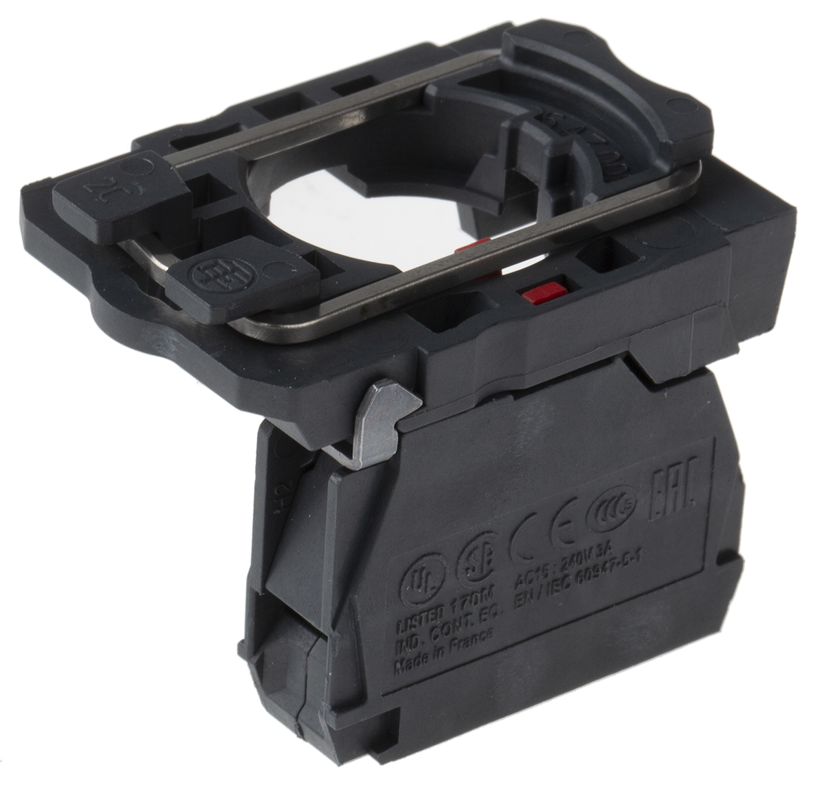 This is Contact block w/ body/fixing collar 1NC manufactured by Schneider Electric. The manufacturer part number is ZB5AZ102. Better World Verification Options - green premium. Is it a better world product? yes. The product has a current rating of 10a. Moreover, the product has a nominal 600v voltage rating. The product harmony xb5, is a highly preferred choice for users. It includes a body/fixing collar yes . The contact is equipped with spst configuration. Its block type is contact block . The terminal is a screw type.