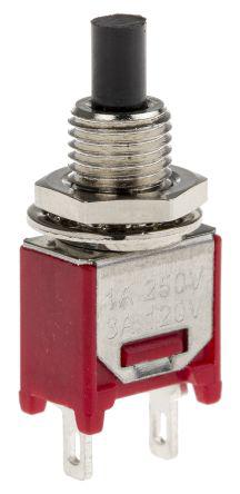 This is SPST Off-(On) Push Button Switch 4.95mm Panel Mount manufactured by RS Pro. The manufacturer part number is 8MS9P1B05M1QES-5. The actuator has an adorable black colour. Whereas, the minimum operating temperature of the product is -30°c. The product is available in panel mount configuration. The product has -30 → +85°c of operating temperature range. The rated contact current is 3 a @ 120 v ac. The panel has a 4.95mm cut-out diameter. The panel cut out size includes 4.95mm. It has about 28v contact DC voltage rating . The contact is equipped with spst configuration. It has a maximum operating temperature of +85°c. The casing is finished with an adorable silver colour. The product carries cap actuator. It provides off-(on) switch operation. Its contact AC voltage rating is about 120 v, 250 v . The terminal is a solder type. The product is made from sturdy silver plated brass materials.