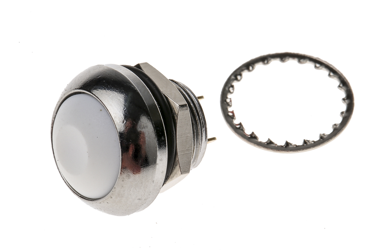 This is SPST Momentary Off Miniature Push Button Switch IP67 13.6 (Dia.)mm Threaded Yellow LED manufactured by RS Pro. The manufacturer part number is 891-9845. Its contact AC voltage rating is about 250v . Illumination Option no. The product is available in panel mount configuration. It is IP rated with ip67. The rated contact current is 200 ma @ 50 v dc, 500 ma @ 32 v ac. The panel has a 13.6mm cut-out diameter. Moreover, the product has a nominal 250 v ac @ 200 ma, 50 v dc @ 200 ma voltage rating. It has about 50v contact DC voltage rating . This pushbutton has a round style pushbutton and is easy to use. The contact is equipped with spst configuration. The casing is finished with an adorable chrome colour. It provides momentary switch operation. While it has an adorable white colour. The terminal is a solder lug type. The product is made from sturdy gold over silver materials.