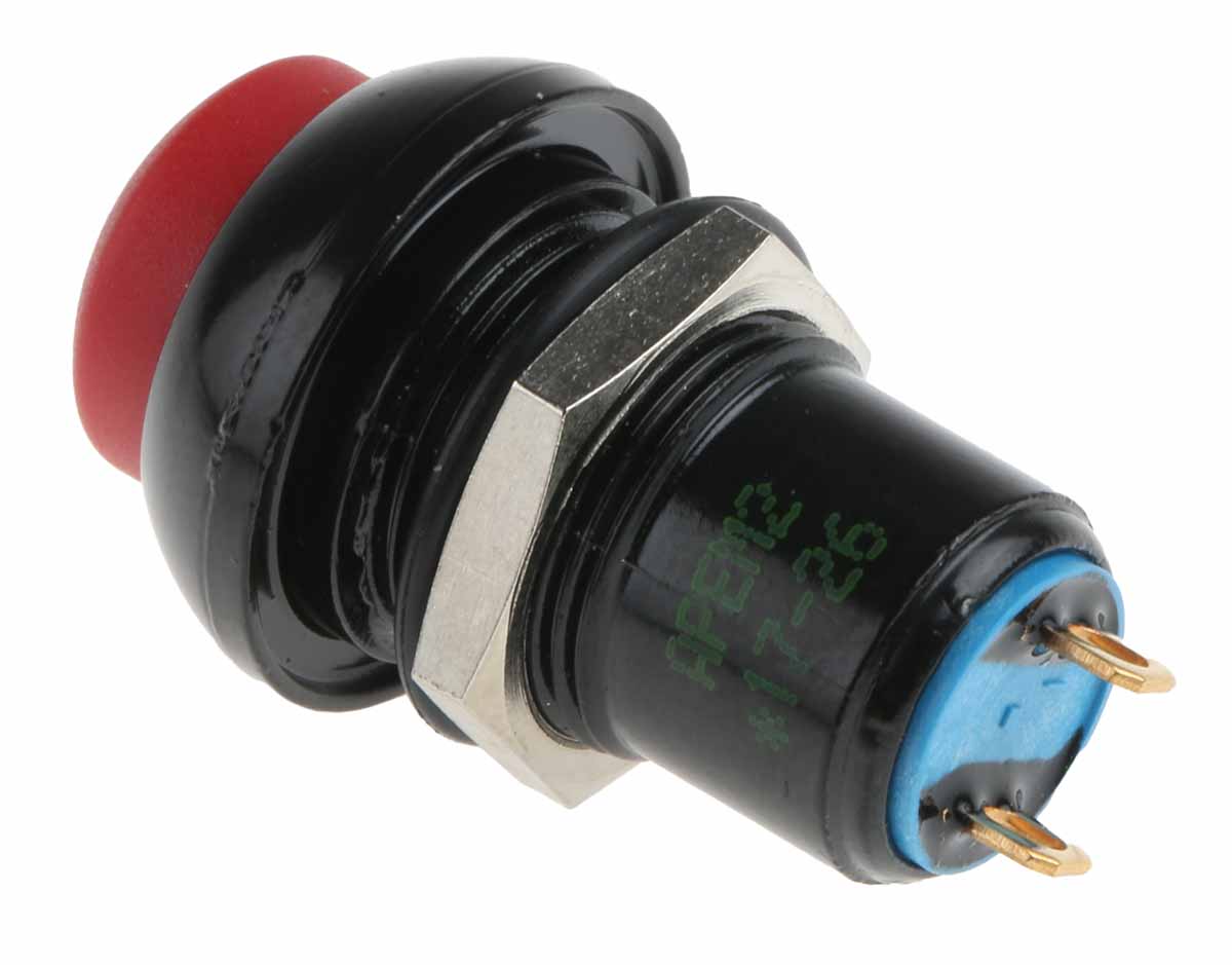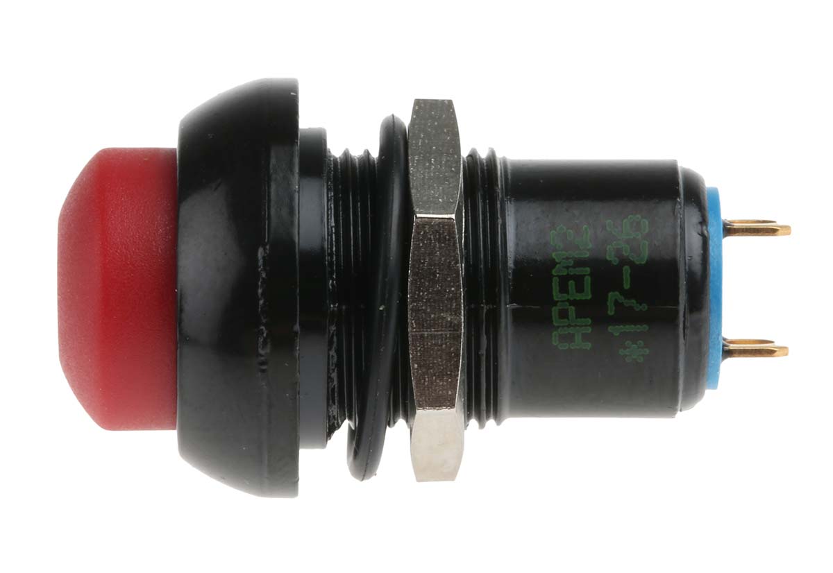This is Off-On Push Button Switch IP67 Panel Mount manufactured by APEM. The manufacturer part number is IPR1SAD6104. Illumination Option no. The product is available in panel mount configuration. Moreover, the product has a nominal 24v dc voltage rating. The rated contact current is 5 a @ 28 v dc. The panel has a 12.9mm cut-out diameter. It is IP rated with ip67. While it has an adorable red colour. The product has an assigned ipr1sad6104 manufacturer part number. It provides latching switch operation. The terminal is a solder type. The product is made from sturdy gold plated silver materials.