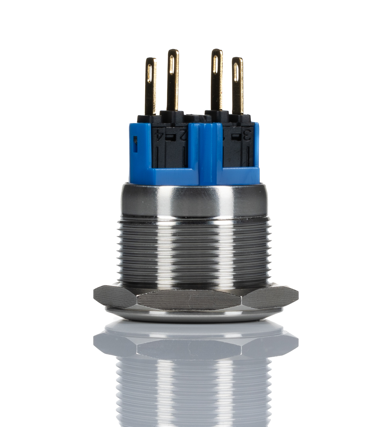 This is SPDT On-Momentary Push Button Switch IP65 IP67 22 (Dia.)mm Panel Mount 250V ac manufactured by RS Pro. The manufacturer part number is 811-8480. Illumination Option no. The product is available in panel mount configuration. Moreover, the product has a nominal 250v ac voltage rating. The rated contact current is 5 a @ 250 v ac. The panel has a 22mm cut-out diameter. It is IP rated with ip65, ip67. This pushbutton has a round style pushbutton and is easy to use. The contact is equipped with spdt configuration. While it has an adorable silver colour. It provides momentary switch operation. Its contact AC voltage rating is about 250v . The terminal is a quick connect type. The product is made from sturdy sliver alloy materials.