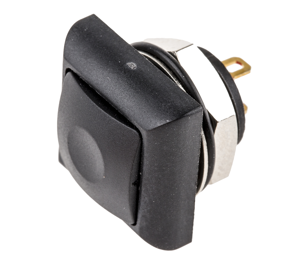 This is SPST-NO Off-(On) Push Button Switch IP67 13.6 (Dia.)mm PCB manufactured by RS Pro. The manufacturer part number is 820-7574. Its contact AC voltage rating is about 32 v, 125v . Illumination Option no. The product is available in pcb configuration. It is IP rated with ip67. The rated contact current is 400 ma @ 32 v ac. The panel has a 13.6mm cut-out diameter. Moreover, the product has a nominal 30v dc voltage rating. It has about 50v contact DC voltage rating . This pushbutton has a square style pushbutton and is easy to use. The contact is equipped with spst configuration. The casing is finished with an adorable black colour. It provides momentary switch operation. While it has an adorable black colour. The terminal is a solder lug type. The product is made from sturdy gold over silver materials.