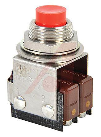 This is DPDT Push Button Switch 20.32 x 35.56mm Panel Mount manufactured by Honeywell. The manufacturer part number is 2PB8. Its panel cut out is 20.32mm wide . The product is available in panel mount configuration. The rated contact current is 5 a. The contact is equipped with dpdt configuration. The product carries round actuator. Its panel cut out is 35.56mm in height . The terminal is a solder/quick connect type. The panel cut out size includes 20.32 x 35.56mm.