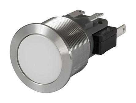 This is SPDT Momentary Push Button Switch IP40 19mm Panel Mount Green LED manufactured by Schurter. The manufacturer part number is 1241.7026.1122000. It is designed with an adorable flat shape actuator . The actuator has an adorable silver colour. Illumination Option yes. The product is available in panel mount configuration. It is IP rated with ip40. The rated contact current is 3 a @ 250 v ac. The panel has a 19mm cut-out diameter. Moreover, the product has a nominal 250v ac voltage rating. The LED has an adorable green colour. The casing is finished with an adorable metallic colour. The product carries button actuator. The contact is equipped with single pole double throw (spdt) configuration. The panel cut out size includes 19 (dia.)mm. The terminal is a tab type. It provides momentary switch operation.