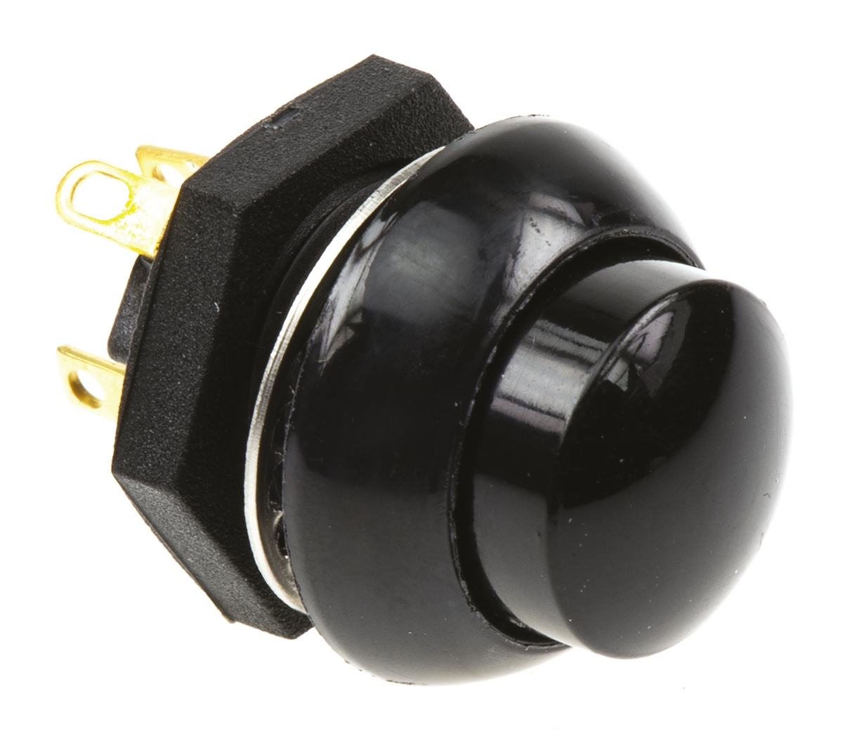 This is DPST-NO/NC Momentary Push Button Switch Panel Mount manufactured by Otto. The manufacturer part number is P9-213122. Illumination Option no. The product is available in panel mount configuration. Moreover, the product has a nominal 28v dc voltage rating. The rated contact current is 5 a @ 28 v dc. This pushbutton has a dome style pushbutton and is easy to use. The contact is equipped with dpdt configuration. While it has an adorable black colour. The product has an assigned p9-213122 manufacturer part number. It provides momentary switch operation. The terminal is a solder type. The product is made from sturdy gold plated silver alloy materials.