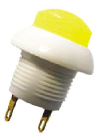 This is DP-NO/NC Momentary Push Button Switch IP64 12mm Panel Mount manufactured by Otto. The manufacturer part number is P9-213194. It is designed with an adorable dome shape actuator . The actuator has an adorable yellow colour. Illumination Option no. The product is available in panel mount configuration. It is IP rated with ip64. The rated contact current is 5 a @ 28 v dc. The panel has a 12mm cut-out diameter. Moreover, the product has a nominal 28v dc voltage rating. The terminal is a solder type. The casing is finished with an adorable white colour. The product carries button actuator. The contact is equipped with double pole double throw (dpdt) configuration. The panel cut out size includes 12 (dia.)mm. It provides momentary switch operation.