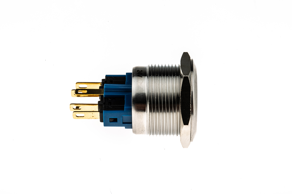 This is SPDT On-Momentary Push Button Switch IP65 IP67 22 (Dia.)mm Panel Mount Green LED 250V ac manufactured by RS Pro. The manufacturer part number is 811-8540. It provides momentary switch operation. The actuator has an adorable silver colour. Illumination Option yes. It is IP rated with ip67, ip65. The contact is equipped with spdt configuration. The LED has an adorable green colour. Whereas, the minimum operating temperature of the product is -20°c. push button switch is a versatile product designed to provide user-defined applications. The terminal is a quick connect type. It has a panel type mount .