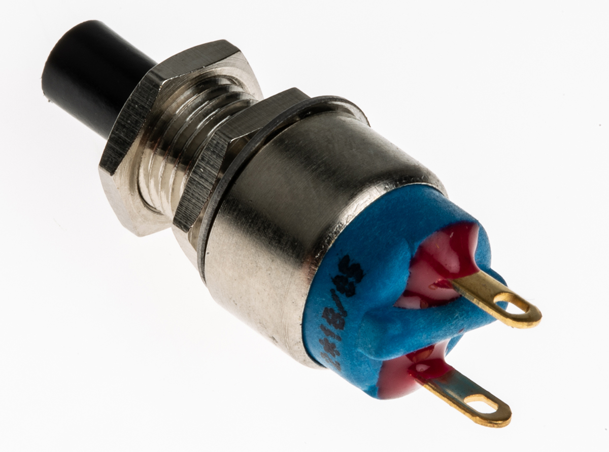 This is SPST-NO Momentary Miniature Push Button Switch Panel Mount manufactured by Apem. The manufacturer part number is 9633NCD. Illumination Option no. The product is available in panel mount configuration. Moreover, the product has a nominal 250v ac voltage rating. The rated contact current is 100 ma @ 30 v dc. The panel has a 6.35mm cut-out diameter. The contact is equipped with spst configuration. The product has an assigned 9633ncd manufacturer part number. It provides momentary switch operation. The terminal is a solder type. The product is made from sturdy gold plated brass materials.