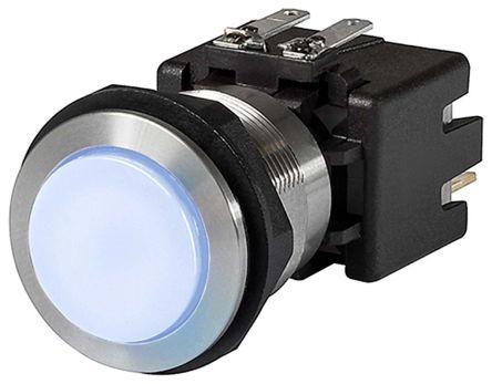 This is DPST-NO Latching Push Button Switch IP00 (Rear Side) IP40 (Front Side Mechanical) IP64 (Front Side Contact Area) manufactured by Schurter. The manufacturer part number is 1241.7226.1124000. It is designed with an adorable round shape actuator . Priced to Clear Options - yes. The actuator has an adorable white colour. Illumination Option yes. The product is available in panel mount configuration. It is IP rated with ip64 (front); ip00 (rear). The rated contact current is 12 a. The panel has a 19mm cut-out diameter. Moreover, the product has a nominal 125/250v ac voltage rating. The LED has an adorable blue colour. The casing is finished with an adorable black colour. The product carries button actuator. The contact is equipped with double pole double throw (dpdt) configuration. The panel cut out size includes 19 (dia.)mm. The terminal is a tab type. It provides latching switch operation.