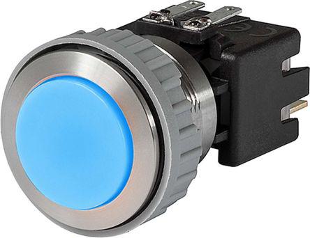 This is DPST-NO Latching Push Button Switch IP00 (Rear Side) IP40 (Front Side Mechanical) IP64 (Front Side Contact Area) manufactured by Schurter. The manufacturer part number is 1241.7236.1124000. It is designed with an adorable round shape actuator . The actuator has an adorable white colour. Illumination Option yes. The product is available in panel mount configuration. It is IP rated with ip64 (front); ip00 (rear). The rated contact current is 12 a. The panel has a 22mm cut-out diameter. Moreover, the product has a nominal 125/250v ac voltage rating. The LED has an adorable blue colour. The casing is finished with an adorable black colour. The product carries button actuator. The contact is equipped with double pole double throw (dpdt) configuration. The panel cut out size includes 22 (dia.)mm. The terminal is a tab type. It provides latching switch operation.