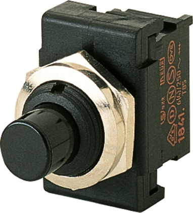 This is SP-NC Push Button Switch IP40 manufactured by Marquardt. The manufacturer part number is 1841.1301. Illumination Option no. It is IP rated with ip40. The rated contact current is 6 a @ 250 v ac. The contact is equipped with spst configuration. The casing is finished with an adorable black colour. While it has an adorable black colour. The product has an assigned 1841.1301 manufacturer part number. The terminal is a tab type. The product is made from sturdy silver materials.