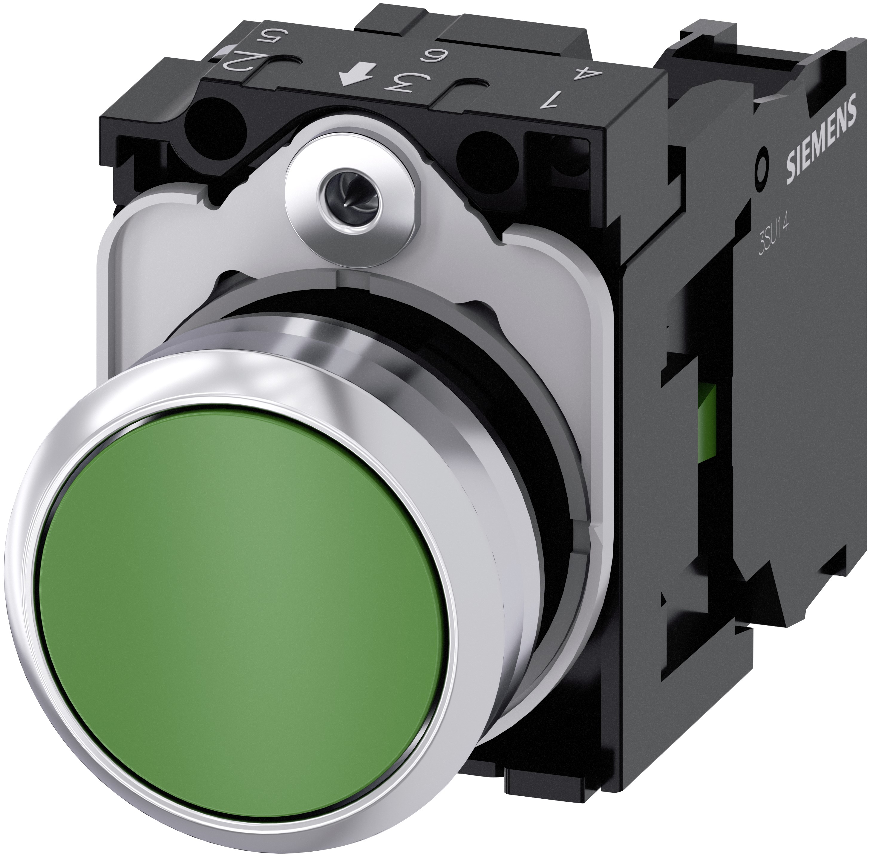 This is SIRIUS ACT Green Push Button Complete Unit NO Momentary manufactured by Siemens. The manufacturer part number is 3SU1150-0AB40-1BA0. This pushbutton has a round style pushbutton and is easy to use. A bespoke product carries 500v of maximum AC voltage. Illumination Option no. Moreover, the product has a nominal 500v voltage rating. The product has -25 → +70°c of operating temperature range. It has a maximum operating temperature of +70°c. The terminal is a screw type. While it has an adorable green colour. It is IP rated with ip66, ip67, ip69(ip69k). The contact is equipped with spst configuration. The product's body is nicely designed from metal materials. The product has an assigned 3su1150-0ab40-1ba0 manufacturer part number. It provides momentary switch operation. It has 500v maximum DC voltage. Is it a better world product? yes. In addition, the push button diameter of the product is about 29.45mm . The product is available in panel mount configuration. The product sirius act 3su11, is a highly preferred choice for users. Pushbutton is manufactured from highly rugged and reliable metal material. The panel has a 22mm cut-out diameter. Whereas, the minimum operating temperature of the product is -25°c.